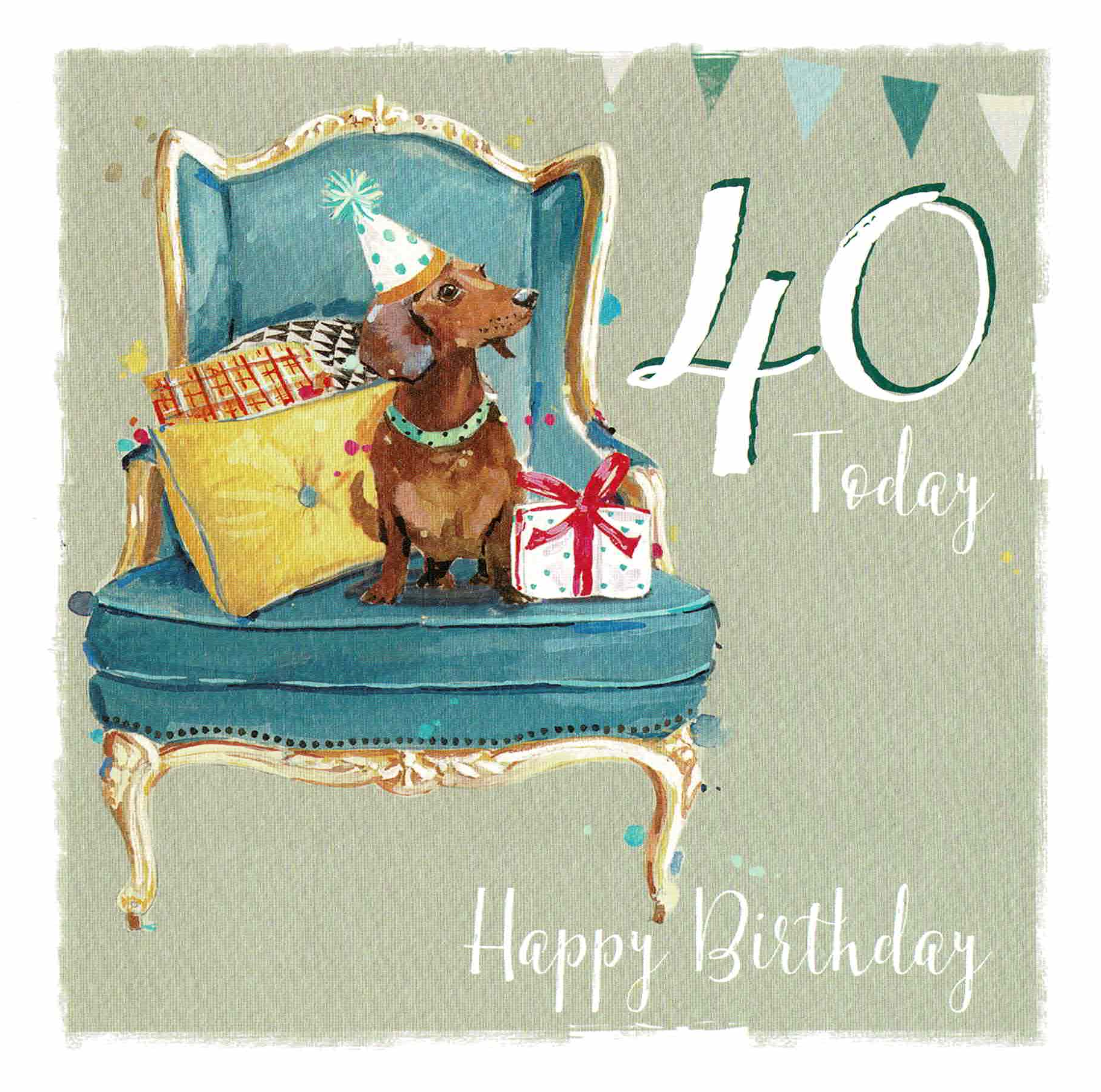 A square, elegant card featuring a very happy party with beautiful dogs.
