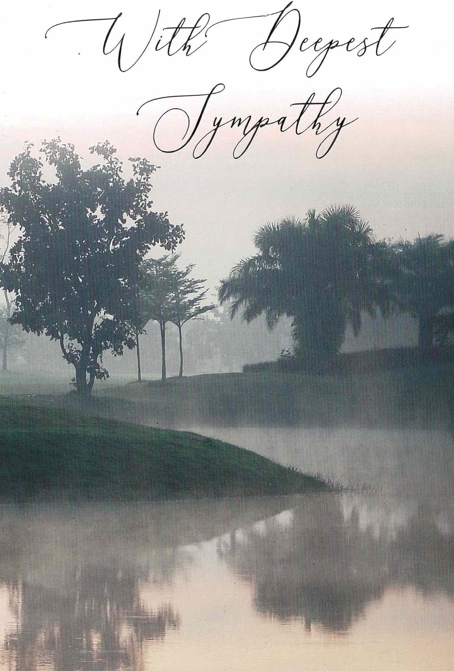 A peaceful sympathy card with an evening forest scene.